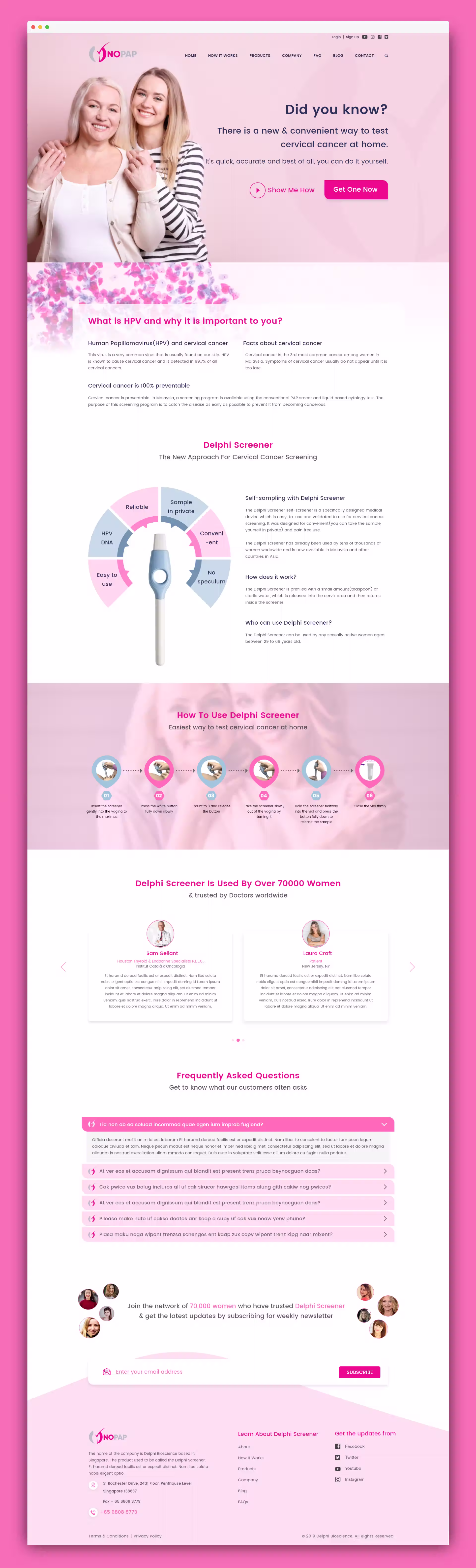 The name of the company is Delphi Bioscience based in Singapore. The product used to be called the Delphi Screener. We are now rebranding the product as NOPAP but it is exactly the same product. We are a bio tech company that specialises consumer tools to prevent cancers. Our target audience is women world wide aged 30 - 60 who do not want to see their gynaecologist every year for a PAP smear.